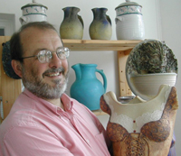 I make mostly thrown objects, at present decorated functional oxidised stoneware, with most recently ornamental garden pieces, bird-baths, sundials, planters and water features, and I get most satisfaction from my work when the objects are used and handled as a natural accessory of life. I certainly do not think I am precious about my work, and love to have a problem to solve. I am most comfortable if there is a fairly tight geometric structure to my work, but I constantly strive to get away from this. The decoration at the moment derives from brush strokes, or more usually scraffitti marks and patterns loosely based on a fusion of my Celtic roots, natural forms, the ground plans of 17th & 18th century fortifications, and the automotive parts of armoured fighting vehicles. We all instinctively and automatically take from our environment and personal interests. I welcome "special" orders, and will work with clients to achieve a satisfactory outcome to particular requirements, if I think they fall within my capabilities. I like to turn round orders within 28 days for the smaller pieces, or 42 days for the birdbaths and sundials.